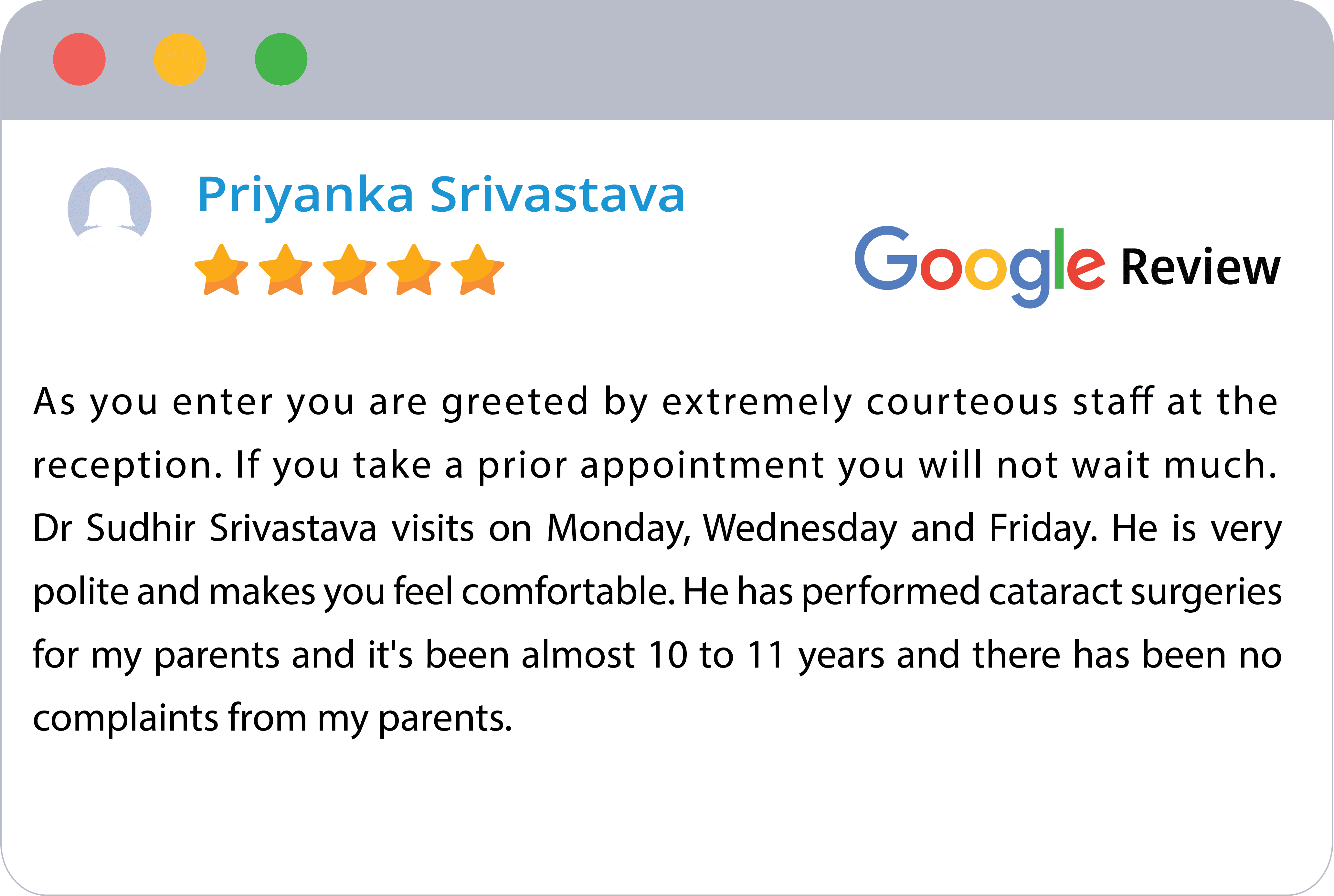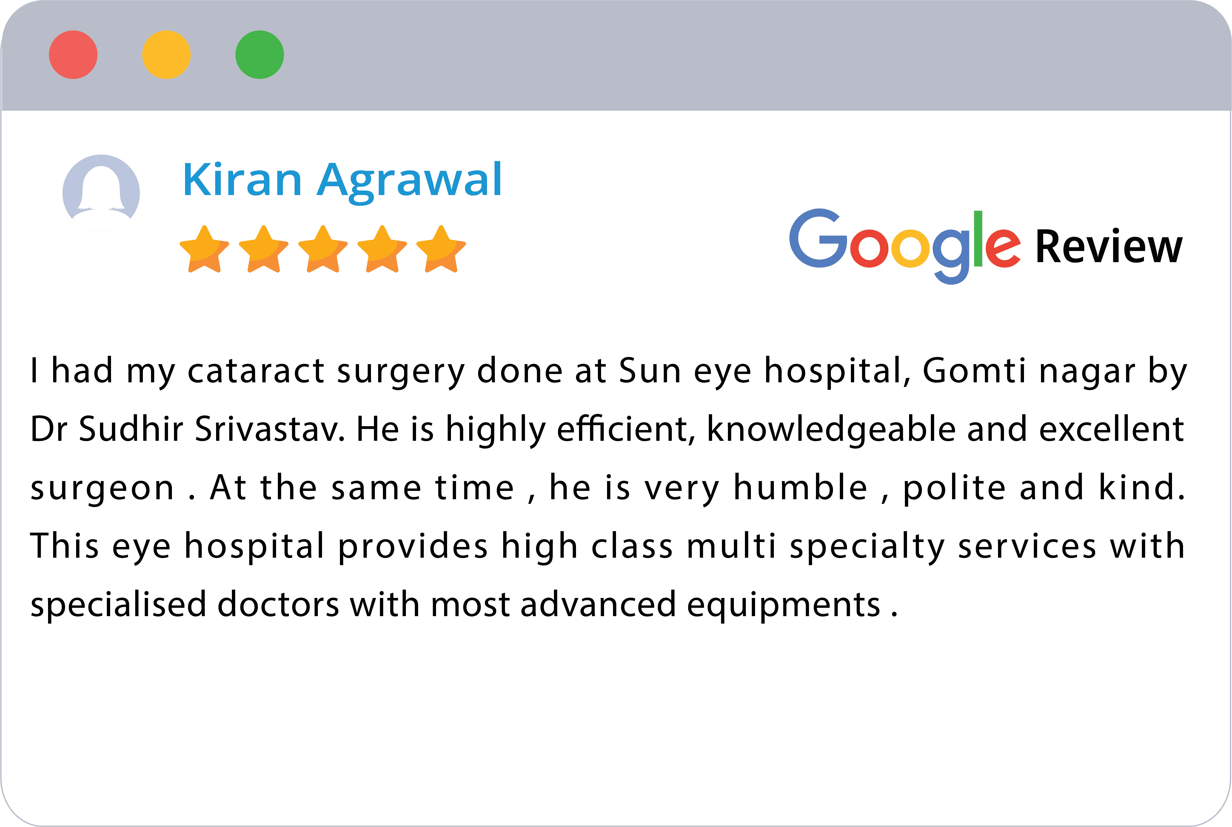 The Sun Eye Hospital & Laser Center is one of the leading super specialty eye care center. It is headed by medical director Dr. Sudhir Srivastava, a renowned ophthalmic surgeon who has many national and International experiences in his credit. Sun Eye Hospital, since its inception in 2000 has always strived to offer the very best of the ophthalmic patients has been in the forefront of delivering specialized eye care services for various disorders of the eye. We are committed to the protection and preservation of the treasured gift of sight. Consistent with our mission to resolve diseases.
